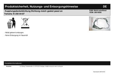Titel: | Kupplungsdeckeldichtung Dichtung clutch gasket passt an Yamaha Xt 250 84-87 |
