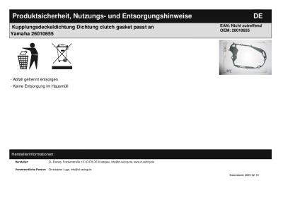 Titel: | Kupplungsdeckeldichtung Dichtung clutch gasket passt an Yamaha Xv 125 250 |