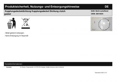 Titel: | Kupplungsdeckeldichtung Kupplungsdeckel Dichtung clutch gasket 26010534 |
