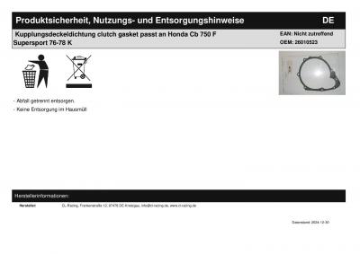 Titel: | Kupplungsdeckeldichtung clutch gasket passt an Honda Cb 750 F Supersport 76-78 K |