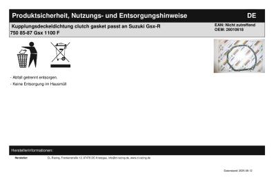 Titel: | Kupplungsdeckeldichtung clutch gasket passt an Suzuki Gsx-R 750 85-87 Gsx 1100 F |