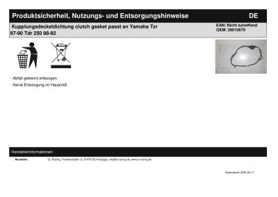 Titel: | Kupplungsdeckeldichtung clutch gasket passt an Yamaha Tzr 87-90 Tdr 250 88-92 |