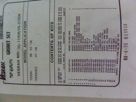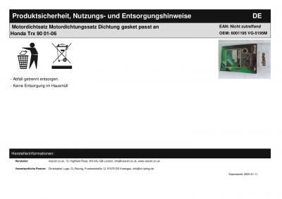 Titel: | Motordichtsatz Motordichtungssatz Dichtung gasket passt an Honda Trx 90 01-06 |