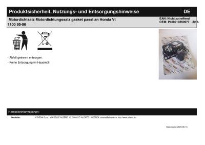 Titel: | Motordichtsatz Motordichtungssatz gasket passt an Honda Vt 1100 95-96 |