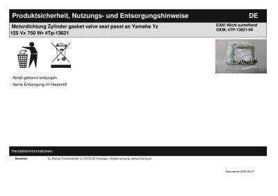 Titel: | Motordichtung Zylinder gasket valve seat passt an Yamaha Yz 125 Vx 750 Wr 4Tp-13621 |