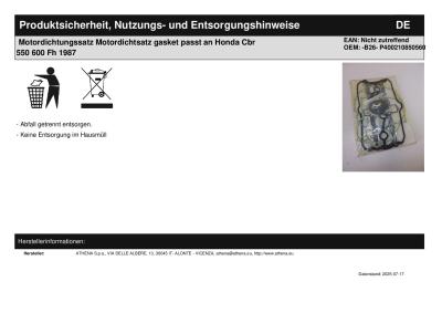 Titel: | Motordichtungssatz Motordichtsatz gasket passt an Honda Cbr 550 600 Fh 1987 |