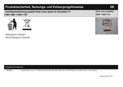 Titel: | Ventildeckeldichtung gasket head cover passt an Kawasaki Vn 1500 1600 11060-1733 |
