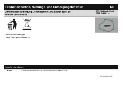 Titel: | Zündungsdeckeldichtung Lichtmaschine Lima gasket passt an Ktm Exc 250 Sx 02-06 |