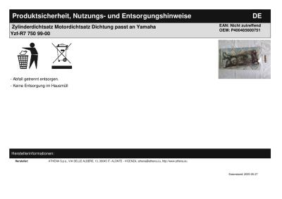Titel: | Zylinderdichtsatz Motordichtsatz Dichtung passt an Yamaha Yzf-R7 750 99-00 |
