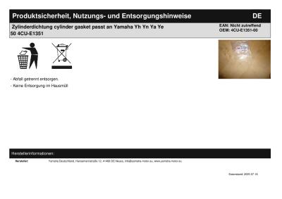 Titel: | Zylinderdichtung cylinder gasket passt an Yamaha Yh Yn Ya Ye 50 4CU-E1351 |