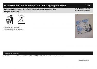 Titel: | Zylinderdichtungssatz Top-End-Zylinderdichtsatz passt an Sgs Peugeot Fox 92-95 |