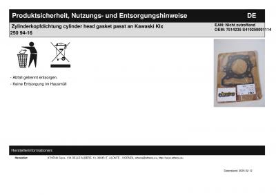 Titel: | Zylinderkopfdichtung cylinder head gasket passt an Kawaski Klx 250 94-16 |