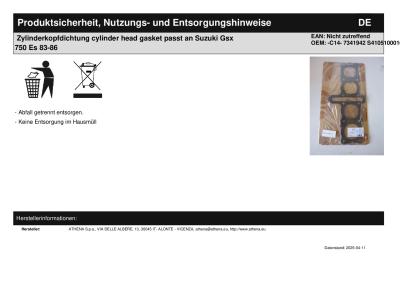 Titel: | Zylinderkopfdichtung cylinder head gasket passt an Suzuki Gsx 750 Es 83-86 |