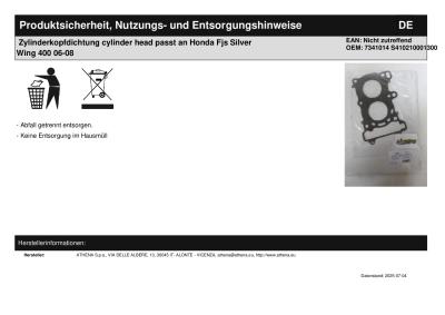 Titel: | Zylinderkopfdichtung cylinder head passt an Honda Fjs Silver Wing 400 06-08 |