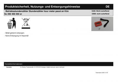 Betriebsstundenzähler Stundenzähler hour meter passt an Ktm Sx 250 400 450 or