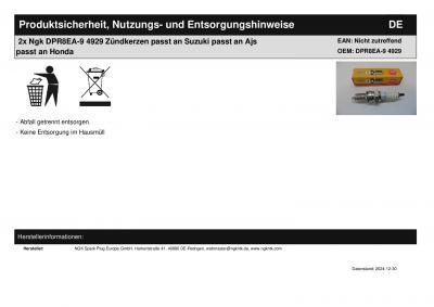 | Titel: | 2x Ngk DPR8EA-9 4929 Zündkerzen passt an Suzuki passt an Honda passt an Ktm |