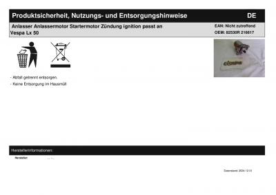 | Titel: | Anlasser Anlassermotor Startermotor Zündung ignition passt an Vespa Lx 50 |