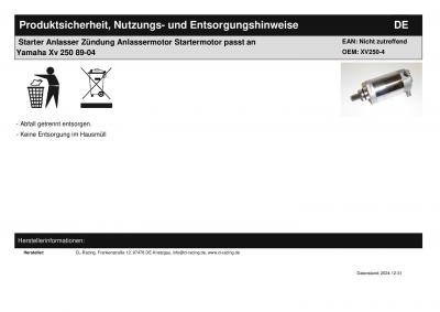 | Titel: | Anlasser Zündung Anlassermotor starter motor passt an Yamaha Xv 250 89-04 125 |