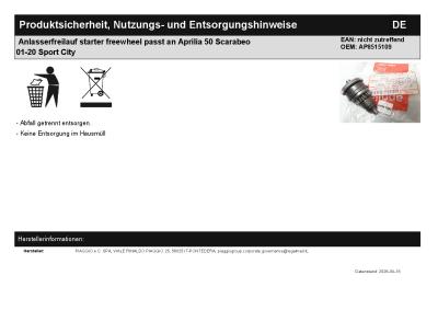 | Titel: | Anlasserfreilauf starter freewheel passt an Aprilia 50 Scarabeo 01-20 Sport City |