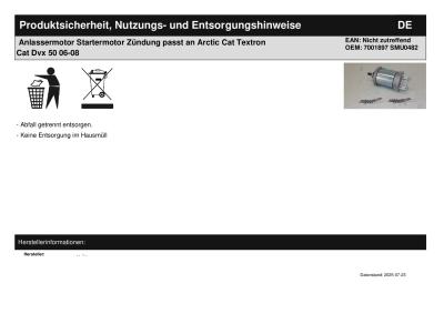 | Titel: | Anlassermotor Startermotor Zündung passt an Arctic Cat Textron Cat Dvx 50 06-08 |