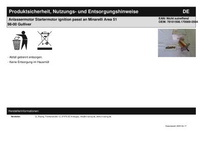 | Titel: | Anlassermotor Startermotor ignition passt an Minarelli Area 51 98-00 Gulliver |
