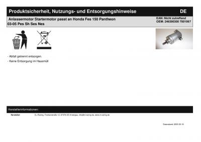 | Titel: | Anlassermotor Startermotor passt an Honda Fes 150 Pantheon 03-05 Pes Sh Ses Nes |