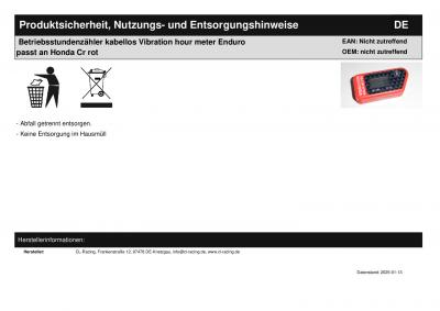 Titel: | Betriebsstundenzähler kabellos Vibration hour meter Enduro passt an Honda Cr rot |