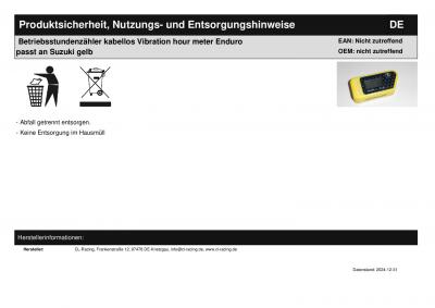 Titel: | Betriebsstundenzähler kabellos Vibration hour meter Enduro passt an Suzuki gelb |