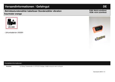 | Versandkennzeichen/ADR Piktogramme: | un_3091 |