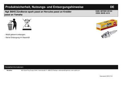 Titel: | Ngk B6HS Zündkerze spark passt an Hercules passt an Kreidler passt an Yamaha |