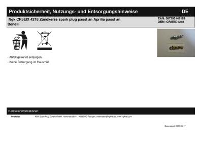 Titel: | Ngk CR8EIX 4218 Zündkerze spark plug passt an Aprilia passt an Benelli |