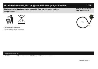 Titel: | Blinkerschalter Lenkerschalter passt für Cev switch passt an Ktm Exc 98-15 Lc4 |