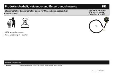 | Titel: | Blinkerschalter Lenkerschalter passt für Cev switch passt an Ktm Exc 98-15 Lc4 |