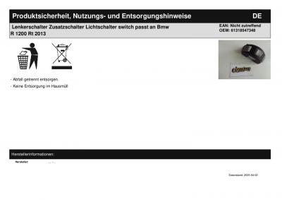 Titel: | Lenkerschalter Zusatzschalter Lichtschalter switch passt an Bmw R 1200 Rt 2013 |