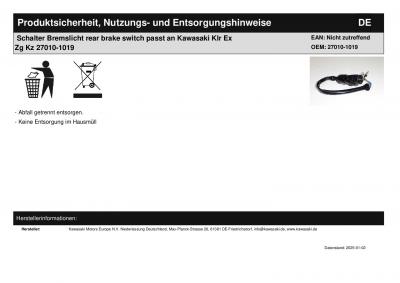 Schalter Bremslicht rear brake switch passt an Kawasaki Klr Ex Zg Kz 27010-1019