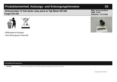 | Titel: | Anlasserrelais 12 Volt starter relay passt an Tgb Blade 500 600 Target 525 550 |