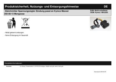 Titel: | Gleichrichter Spannungsregler Zündung passt an Kymco Maxxer 250 08-13 Mongoose |