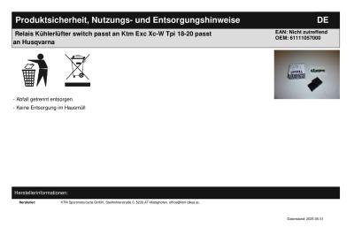 Titel: | Relais Kühlerlüfter switch passt an Ktm Exc Xc-W Tpi 18-20 passt an Husqvarna |