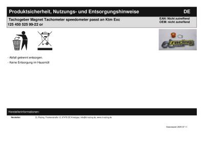 Titel: | Tachogeber Magnet Tachometer speedometer passt an Ktm Exc 125 450 525 99-22 or |