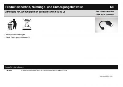 Titel: | Zündspule für Zündung ignition passt an Ktm Sx 50 02-06 |