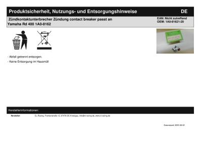 Titel: | Zündkontaktunterbrecher Zündung contact breaker passt an Yamaha Rd 400 1A0-8162 |