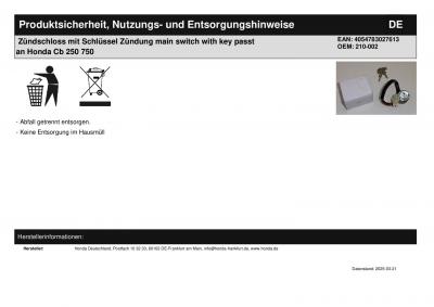 | Titel: | Zündschloss mit Schlüssel Zündung main switch with key passt an Honda Cb 250 750 |