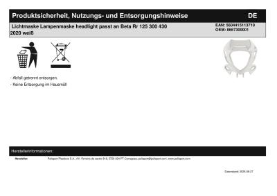 Titel: | Lichtmaske Lampenmaske headlight passt an Beta Rr 125 300 430 2020 weiß |