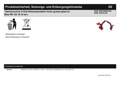 Titel: | Rahmenschutz X-Grip Rahmenprotektor frame guards passt an Beta RR 125 18-19 sw-r |