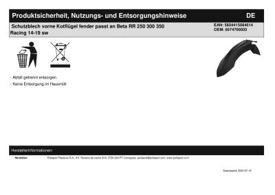 | Titel: | Schutzblech vorne Kotflügel fender passt an Beta RR 250 300 350 Racing 14-19 sw |