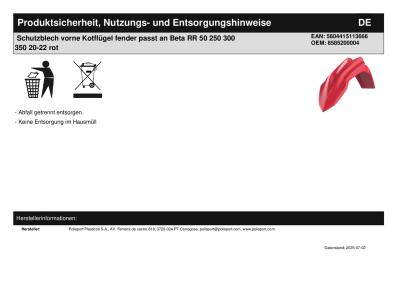 Titel: | Schutzblech vorne Kotflügel fender passt an Beta RR 50 250 300 350 20-22 rot |