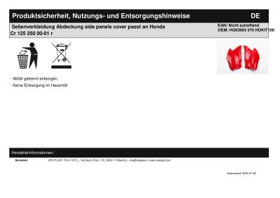 Titel: | Seitenverkleidung Abdeckung side panels cover passt an Honda Cr 125 250 00-01 r |