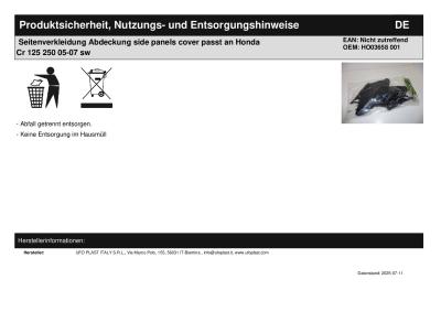 Titel: | Seitenverkleidung Abdeckung side panels cover passt an Honda Cr 125 250 05-07 sw |