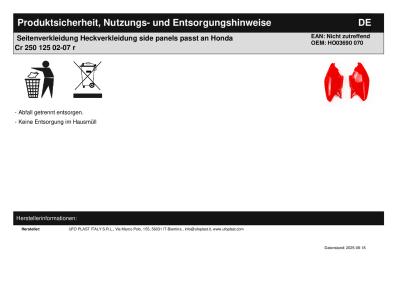 Titel: | Seitenverkleidung Heckverkleidung side panels passt an Honda Cr 250 125 02-07 r |