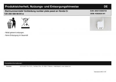 Titel: | Startnummerntafel Verkleidung number plate passt an Honda Cr 125 250 500 90-94 w |